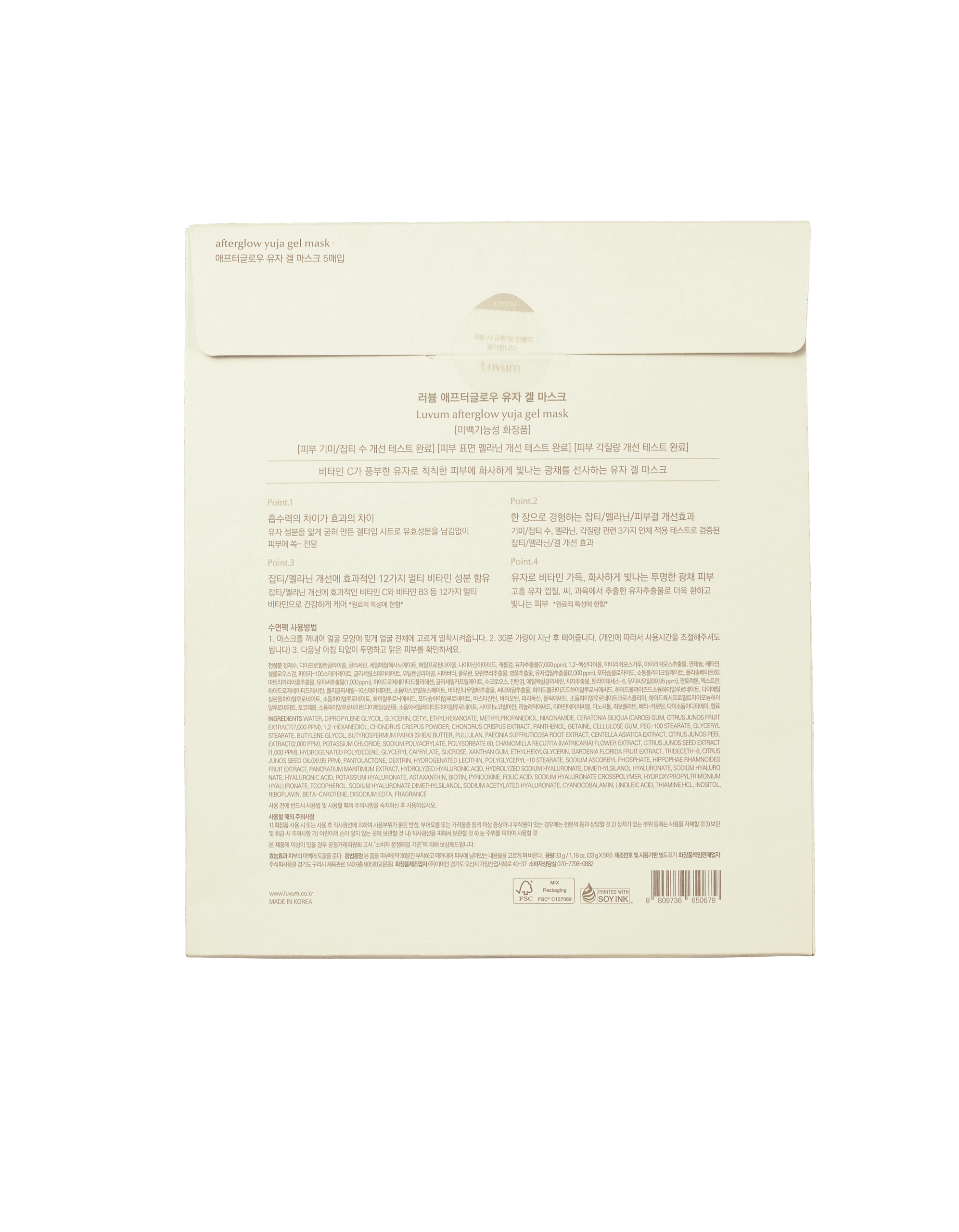 Luvum Afterglow Yuja Gel Mask 33g/5sheets – Masque Éclat Hydratant à la Yuja pour Peau Lumineuse